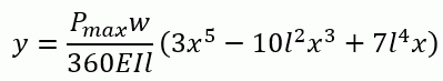 y:変位量、l,w,h :梁の寸法、Pmax:モデル右端の圧力最大値、x:座標、E:ヤング率、I:断面二次モーメント