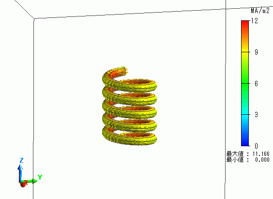 ヘリカルコイルによって発生する磁界ベクトルの解析結果を示します。