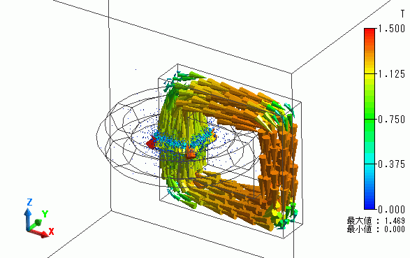 磁界ベクトルや磁束密度ベクトルを解析結果として見ることができます。