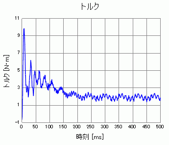 時刻-トルク特性を示します。結果テーブルの「トルク[N・m]」に出力されます。