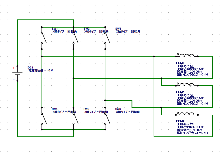 ホーム / 例題集 / 磁場解析[Luvens、過渡解析] / 例題10 120度通電DCモータ(SW素子利用)