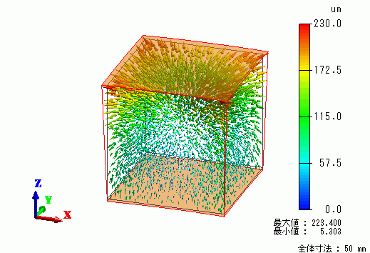 ひき続いて、応力解析の結果として変位ベクトル図を示します。