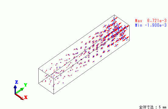 左側端面から右側端面に向けてひずみが増大していることが分かります。