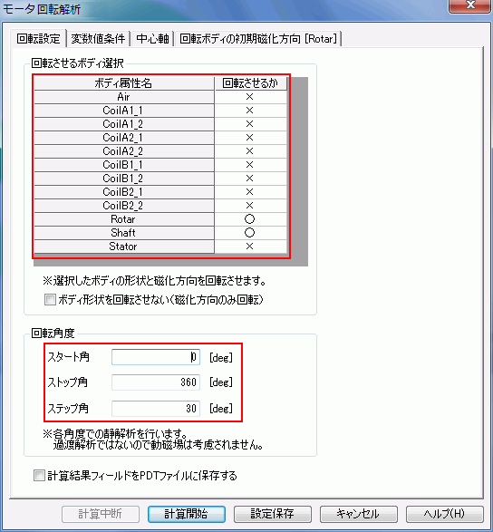 モータ回転解析の概要については「モータ回転解析」を参照して下さい。