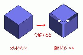 例えば、下図のように6面体(ソリッドボディ)は6つの面トポロジから成っています。