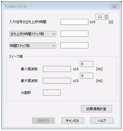 このダイアログでは、TDR解析の時間の設定から、その結果を得るのに必要な調和解析の解析周波数の設定に