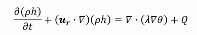 左辺第1項は蓄熱項、左辺第2項は移流項、