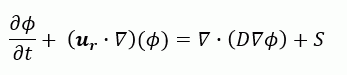 右辺第1項は拡散項、右辺第2項はソース項を示します。