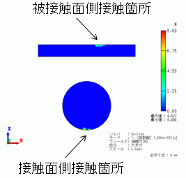 また、結果表示において、フィールド値「接触力」を選択することにより、接触箇所を確認することもできます(ケース6参照)。