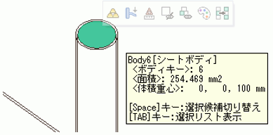 まず、縦パイプ上の開口部のシートボディの面をハイライトして、クリックし、選択します。
