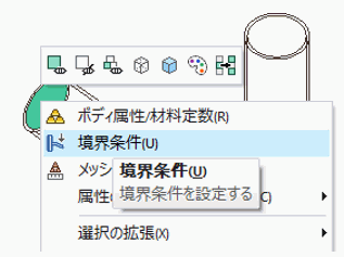 右クリックし、右クリックメニューから[境界条件]を選択します。
