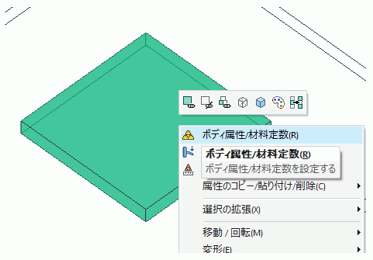 1. 右クリックし、右クリックメニューから、[ボディ属性/材料定数]を選択します。
