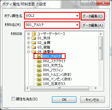 材料DBツリー[04_誘電体]から[001_アルミナ]を選択し、